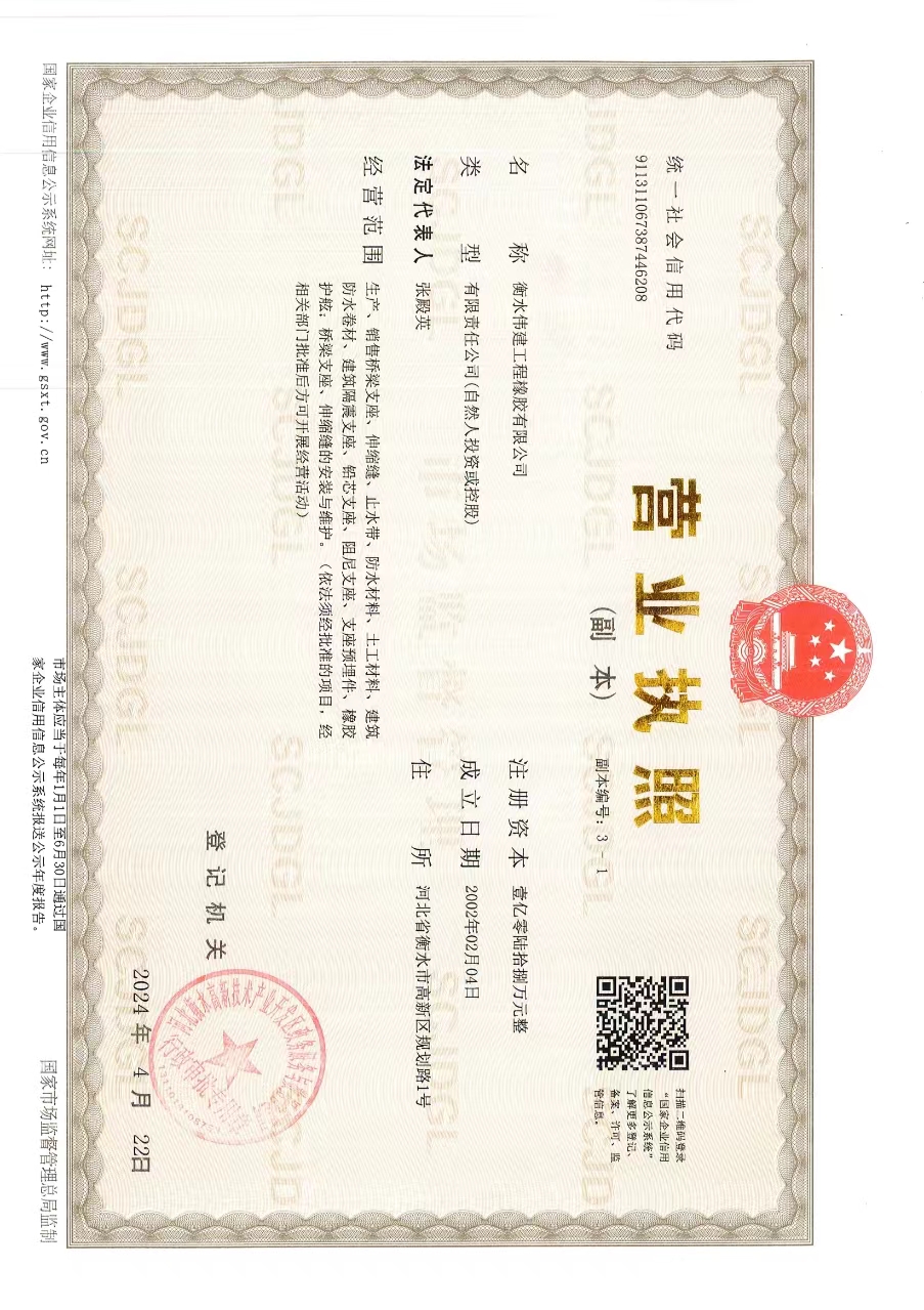 衡水偉建工程橡膠有限公司位于河北省衡水市高新區(qū)規(guī)劃路1號,成立于2002年,占地面積二萬六千平方米。